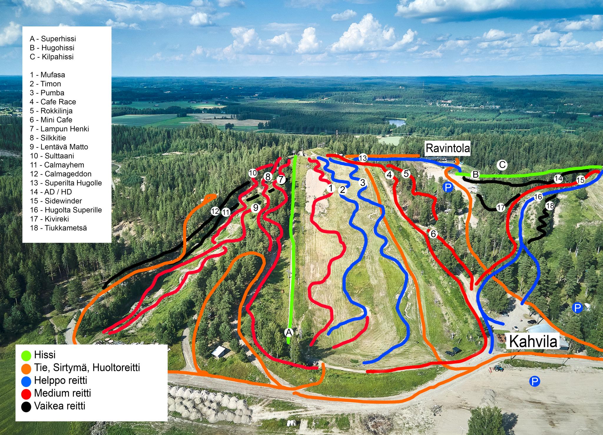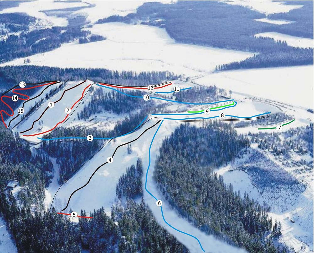 Kalpalinna is a ski resort and bike park located in Janakkala, Finland. It offers ski slopes for all levels of downhill skiers and snowboarders, with 3.8 km of slopes and 4 lifts. The resort also features a bike park with various trails and zones. Kalpalinna is known for its challenging slopes, with the highest altitude reaching 174m. The resort is easily accessible from southern Finland, with a central location that allows for a one-hour drive.
