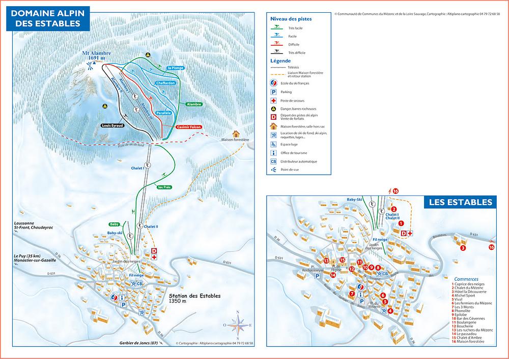 Les Estables is a ski resort in the Haute-Loire department of France, located in the Auvergne-Rhône-Alpes region. The resort offers a range of activities, including skiing, snowboarding, and hiking, with 8 trails to choose from. The village of Les Estables is situated at an altitude of 1,343 meters, making it the highest village in the Massif Central. The resort is family-friendly and offers a variety of accommodations, including ski-in/ski-out rentals and luxury hotels.