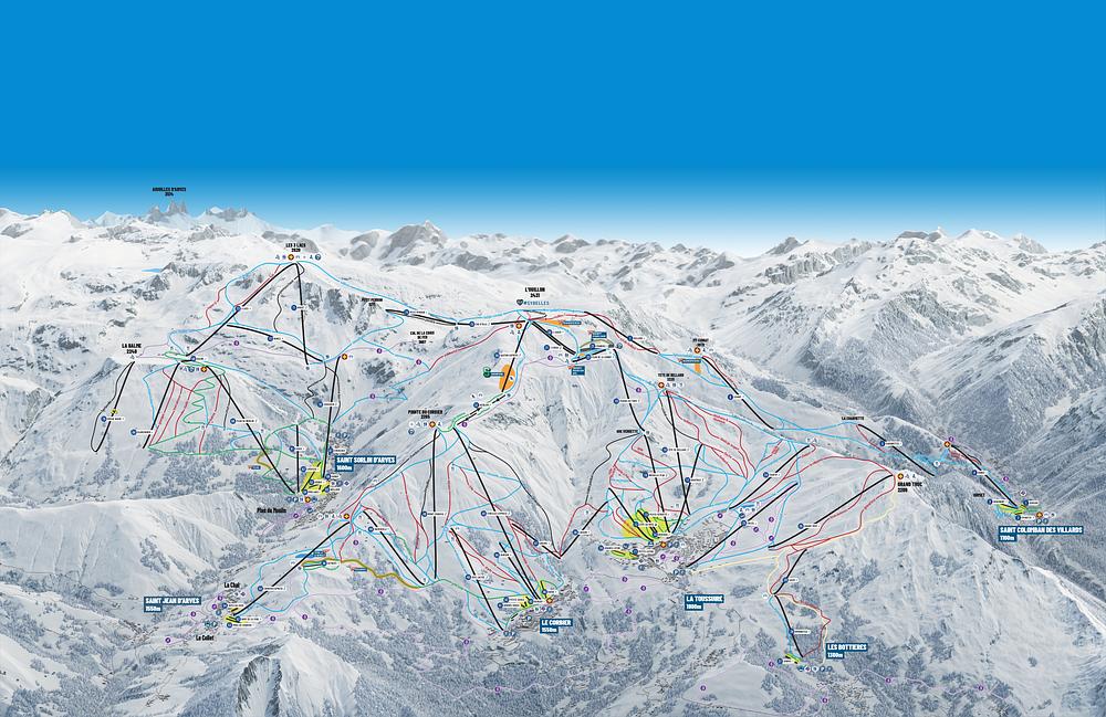 Les Sybelles is a linked ski area in the Savoie department of the French Alps, boasting 310 km of slopes and 136 pistes for all levels. The resort is situated in the Maurienne Valley, 1,150m above sea level, and offers a range of activities, including skiing, snowboarding, and backcountry runs. With 73 lifts and a variety of accommodation options, Les Sybelles is a popular destination for winter sports enthusiasts. The area is known for its dramatic mountain scenery and offers a range of packages and passes for visitors.
