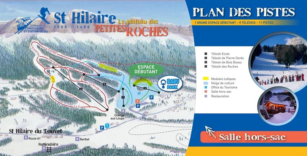 Saint-Hilaire-du-Touvet is a ski resort in the French Alps, located on the Plateau des Petites Roches in the Isère department. It offers 10 alpine ski runs, a toboggan run, and snowshoeing areas, primarily catering to families. The resort has five lifts and a range of pistes, including green, blue, and red runs. The village of Saint-Hilaire-du-Touvet offers a unique panorama and is situated within the Chartreuse Nature Park.
