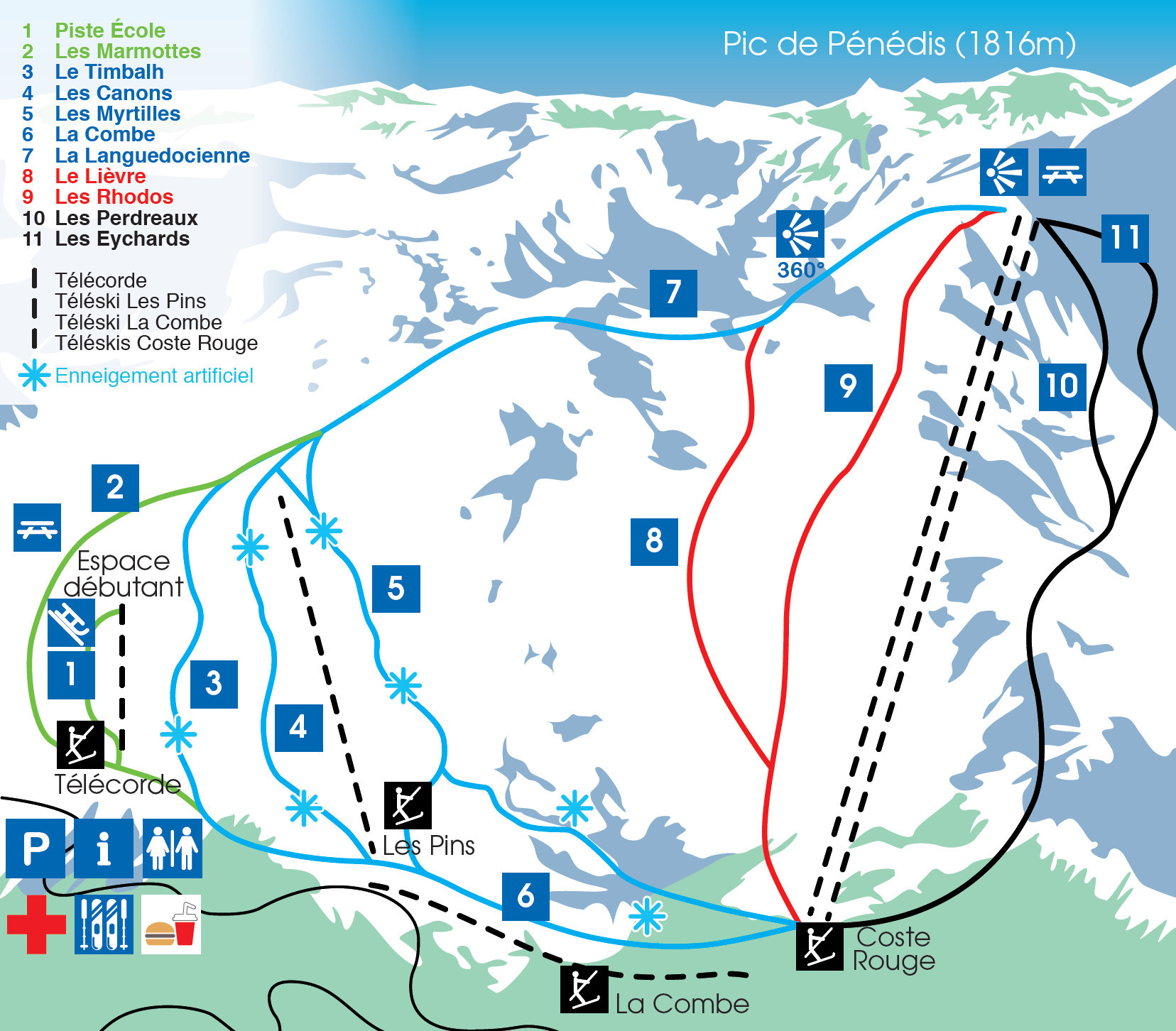 Camurac is a ski resort located in the French Pyrenees, offering a range of skiing and snowboarding opportunities for all levels. The resort has 11 alpine ski trails, 2 cross-country ski/snowshoe routes, and 4 ski lifts, including a telecable. The ski area ranges from 1510 to 1780 meters above sea level, providing a variety of slopes for beginners, intermediate, and advanced skiers. Camurac is a family-friendly resort with a human-scale atmosphere, making it an ideal destination for both active and relaxing holidays.