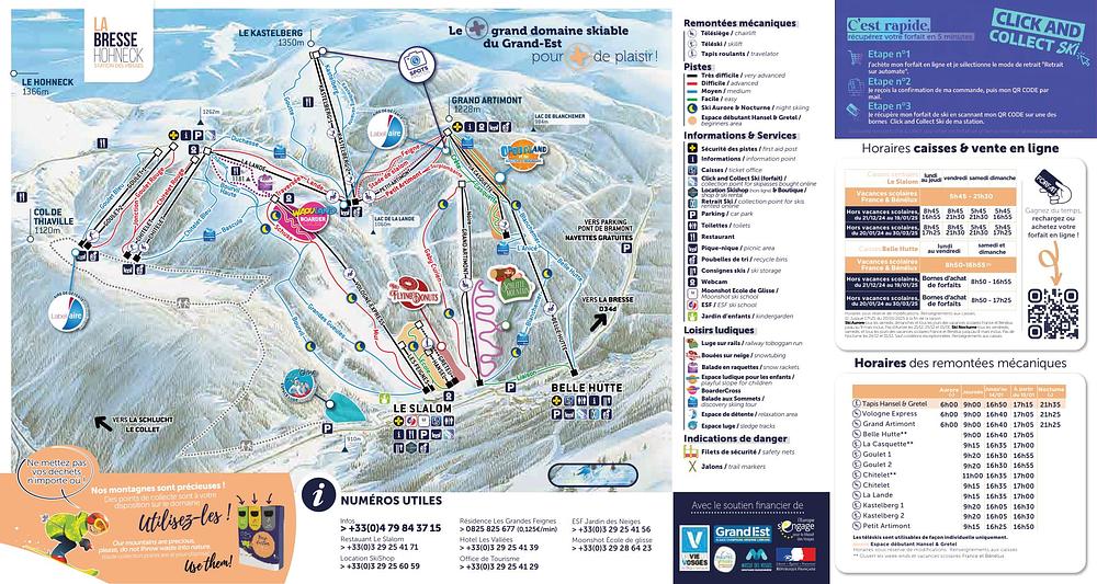 La Bresse-Hohneck is a ski resort in the Vosges, France, offering 220 hectares of skiable terrain, 33 pistes, and 15 lifts. It's situated in the heart of the Ballons des Vosges Natural Park, with breathtaking views of passes, lakes, and forests. The resort caters to all levels, with a variety of slopes and a fun park for freestyle skiing. In the summer, visitors can enjoy hiking, mountain biking, and an alpine coaster. La Bresse-Hohneck is a popular destination for families and thrill-seekers alike, with a range of amenities, including restaurants and shops.