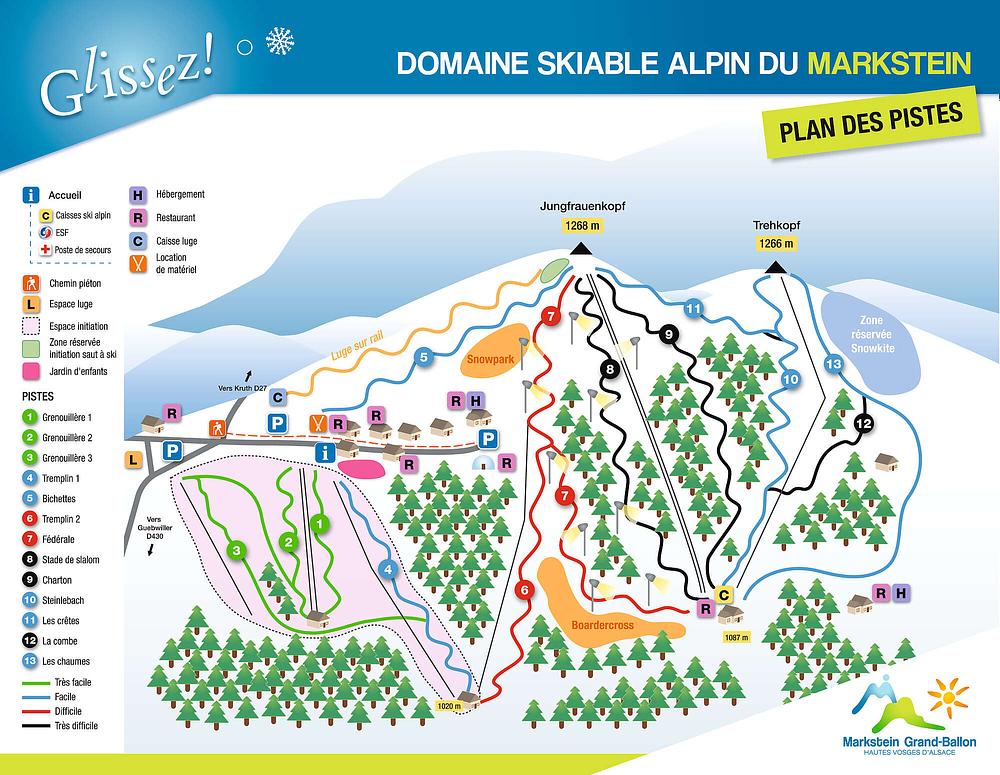 Le Markstein is a winter sports station in the Vosges mountains of France, situated at an altitude of 1,020-1,268 meters. It offers 10 km of slopes for skiing and snowboarding, as well as a cross-country skiing area with over 40 km of tracked pistes. The resort has 13 runs for all levels, served by 8 ski lifts, and is located near the Route des Crêtes. Le Markstein is a popular destination for winter sports enthusiasts, with a range of activities and stunning views of the surrounding valleys and mountains.