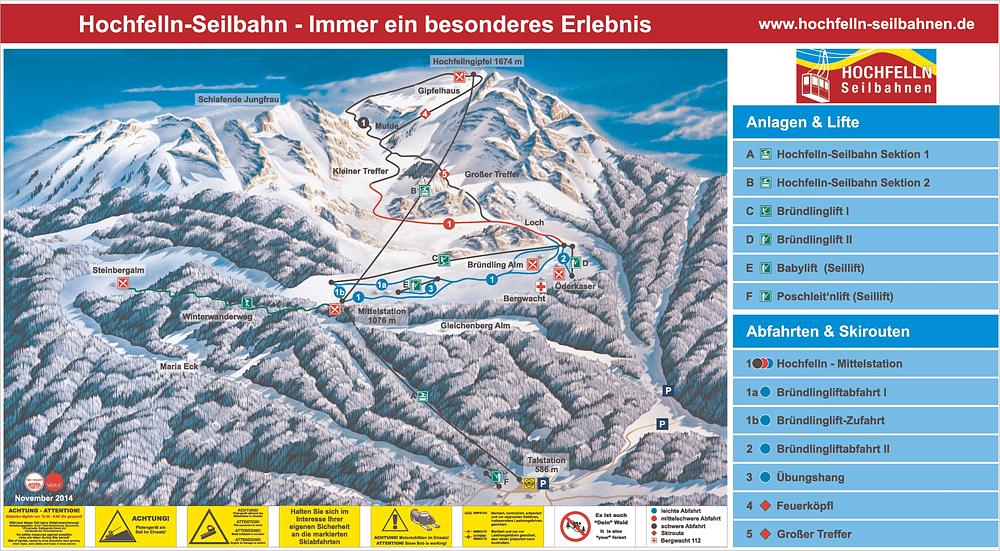 Hochfelln is a popular ski resort in Bergen, Bavaria, Germany, offering a range of slopes for all abilities. The resort features two large cabin lifts, a ski lift, a plate, and two baby lifts, with a summit elevation of 1,674 meters. From the top, visitors can enjoy breathtaking views of the Chiemgau Alps and Lake Chiemsee. The resort is easily accessible by cable car from the valley station, and visitors can also dine at one of the cozy restaurants on the mountain. With 6 trails and a medium-sized ski area, Hochfelln is a great destination for a winter sports enthusiasts.