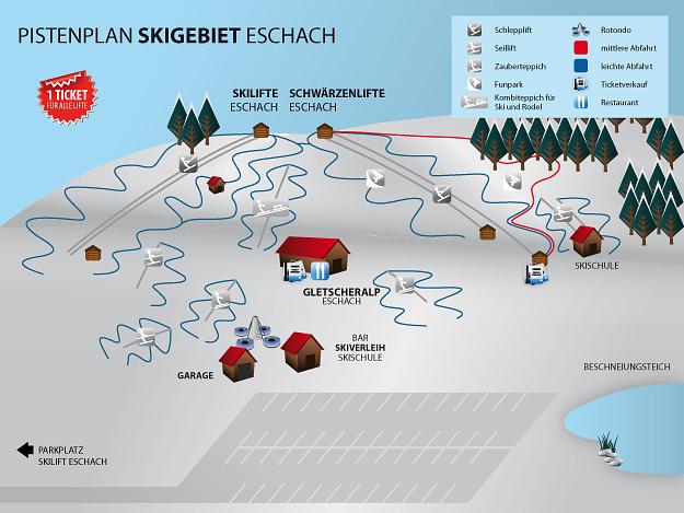 Schwarzenlifte Eschach is a family-friendly ski resort in Buchenberg, Bavaria, Germany. It offers mainly easy slopes for beginners, children, and those returning to snow sports. The resort features 3 km of skiable terrain, 8 surface lifts, and a vertical drop of 100m. It's an ideal destination for young and old, with simple and manageable pistes ensuring successful skiing fun for all levels.