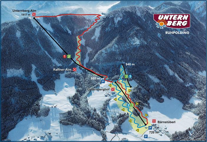 Unternberg (Ruhpolding) is a family-friendly ski resort in Ruhpolding, Bavaria, Germany. It offers 2.5 km of slopes and 3.6 km of ski routes, with 3 lifts transporting guests. The resort is known for its moderate prices and well-groomed slopes, making it an ideal destination for beginners and families. The highest point reaches 1,417 meters above sea level.