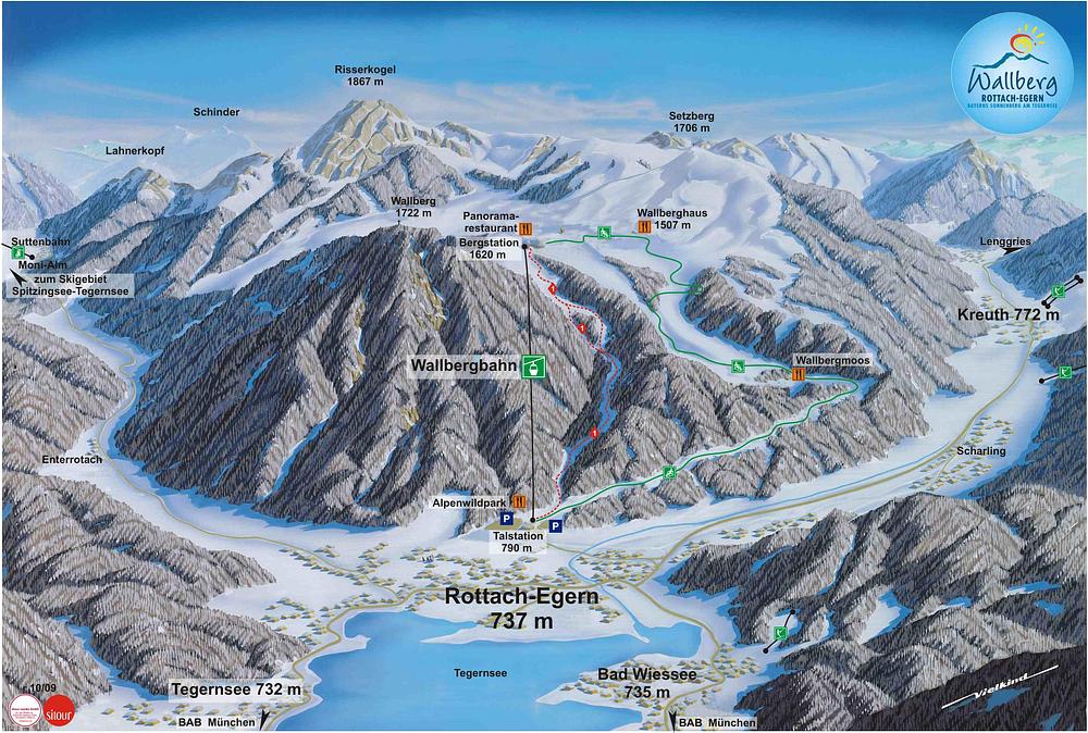 Here's a 50-100 word summary of Wallbergbahn (Tegernsee): The Wallbergbahn is a mountain cable car in Rottach-Egern, Germany, offering breathtaking views of Lake Tegernsee and the surrounding Alps. The cable car takes visitors from the valley station to the summit in about 15 minutes, covering over 800 meters of altitude. The mountain offers a 6.5-kilometer natural toboggan run, a regional restaurant, and hiking trails in winter. With its panoramic views and convenient access, the Wallbergbahn is a popular destination for outdoor enthusiasts and families. It's open from 8:45 a.m. to 4:30 p.m., with the last descent at 3:30 p.m.