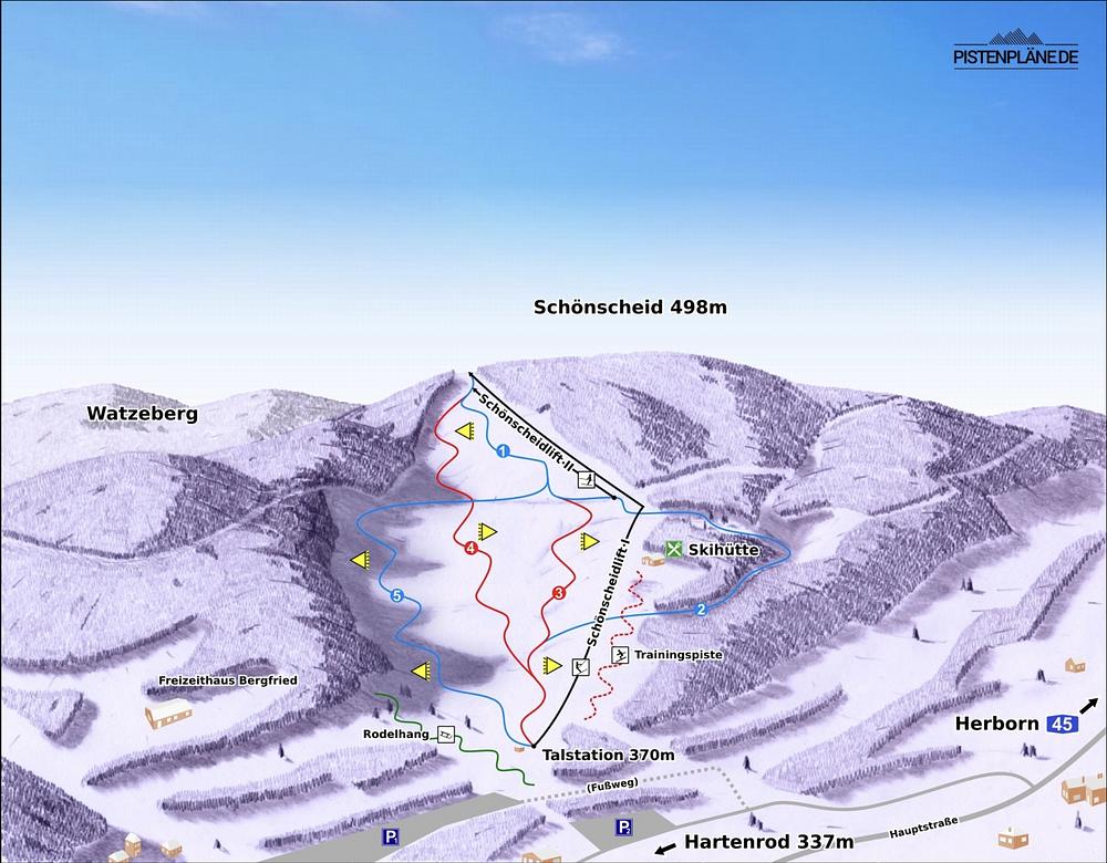 Hartenrod is a ski resort located in Bad Endbach, Hesse, Germany. It features 2 ski lifts with a total length of 2.1km and offers skiing opportunities on a 750-meter long slope. The resort is part of the Lahn-Dill-Bergland region and is open from 10am to 10pm, with limited hours during the week.