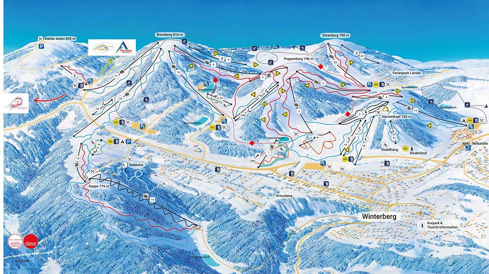 Skiliftkarussell Winterberg is a major ski resort in central Germany, located near the town of Winterberg in the Hochsauerland region of North Rhine-Westphalia. It attracts nearly 900,000 visitors annually, making it a popular destination for skiers from the Netherlands and beyond. The resort features 27 trails, 26 lifts, and 34 well-groomed runs on seven mountains, offering a range of skiing opportunities for all levels. The resort is known for its state-of-the-art lift system, efficient infrastructure, and friendly staff.