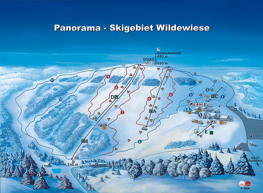 Wildewiese ski resort in Sundern, Germany offers 5 km of slopes and terrain, making it one of the largest ski resorts in North Rhine-Westphalia. The resort has 11 trails and a 4.6-star rating based on 755 Google reviews. It's a ski-in/ski-out hotel, Steinbergs Wildewiese Naturhotel, is available for accommodation. The resort offers a unique blend of traditional and modern styles.