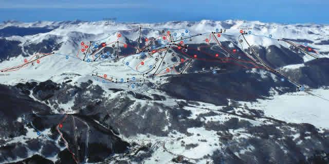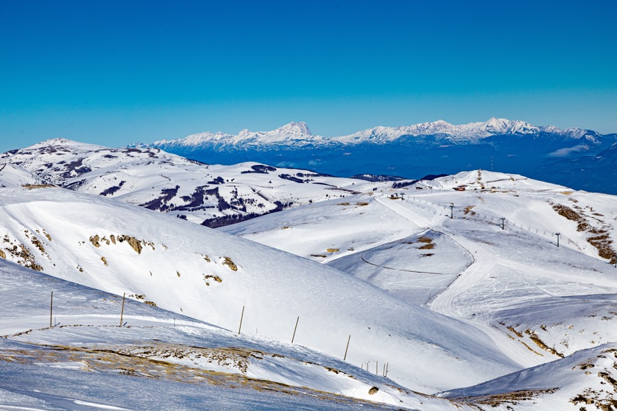 Roccaraso - Rivisondoli is a ski resort located in the Province of L'Aquila, Italy, in the Abruzzo region. It offers a vast network of cross-country routes and 60km of pistes with 855m of vertical, making it one of the largest Italian resorts outside the Alps. The resort has three separate ski areas, providing a good mix of ski conditions and gradients. It's a popular destination for skiing and snowboarding, with 67 trails and a ski pass available.