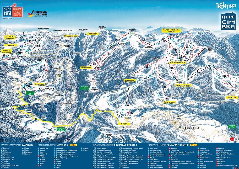 Alpe Cimbra is a ski resort located in Folgaria, Italy, offering 104 km of slopes for skiing, snowboarding, and sledding. The resort boasts a variety of activities, including mountain biking, hiking, and horseback riding, amidst stunning natural beauty and authentic local traditions. With a range of slopes for all abilities, from easy to challenging, Alpe Cimbra is a paradise for skiers and snowboarders.