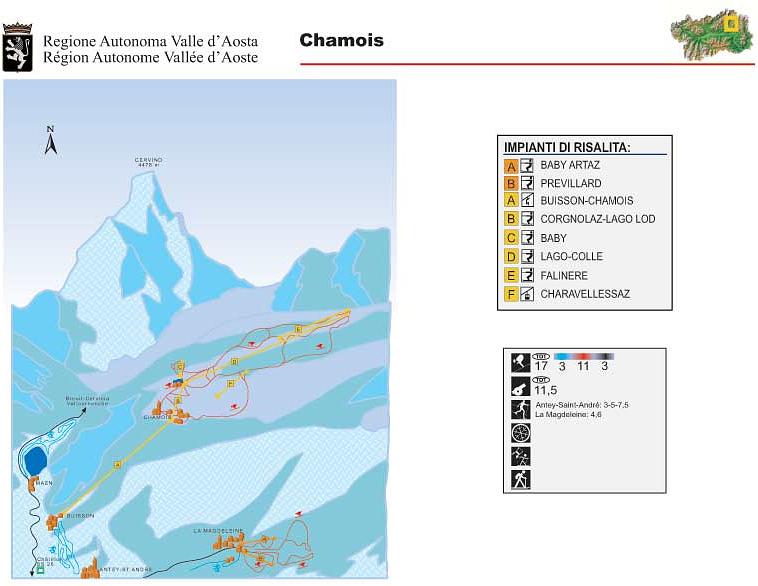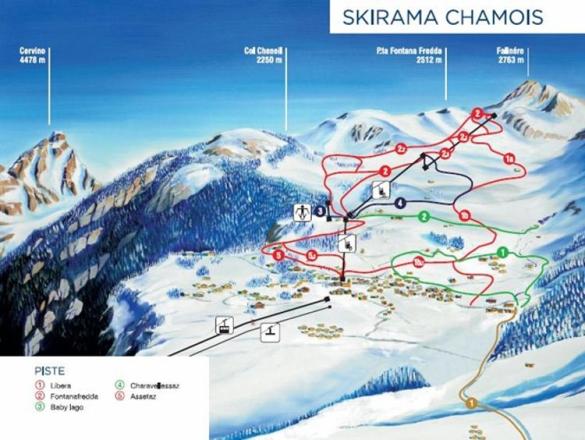 La Magdeleine is a small ski resort in the Aosta Valley, Italy, located on the Matterhorn (Monte Cervino). It offers 1 km of downhill skiing with programmed snow cover, suitable for beginners and children. The resort has 4 marked pistes, served by 3 ski lifts, and a beginners area. La Magdeleine is a traditional village with good ski mountaineering and cross-country skiing opportunities, and a skating rink. It's a great destination for families and those looking for a relaxed skiing experience.