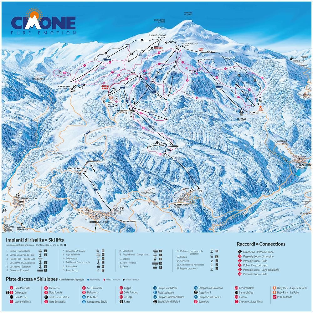 Comprensorio di Passo del Lupo is a ski resort located in the province of Modena, Emilia-Romagna, Italy. It is situated in the northern Apennines and features over 50 km of slopes, making it one of the largest ski resorts in the region. The resort offers a variety of skiing opportunities for all levels, from beginner to expert, and is surrounded by picturesque villages and scenic views.