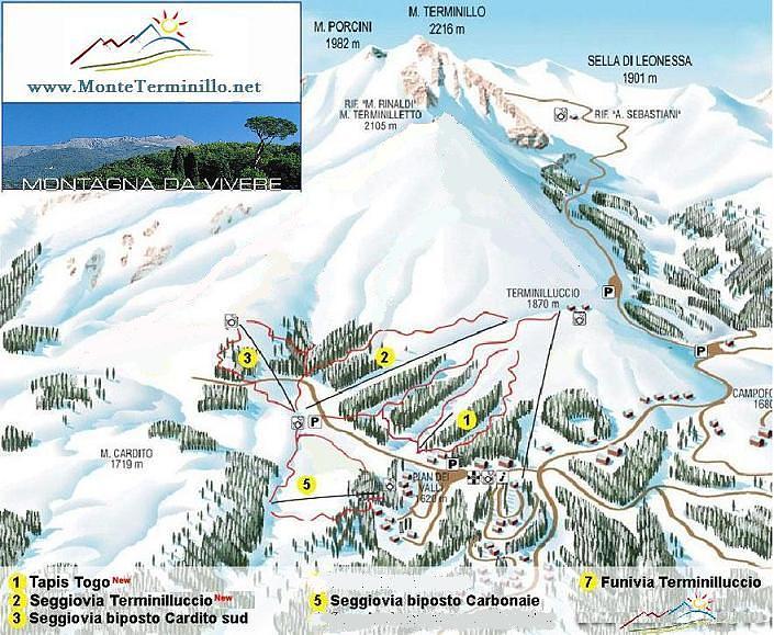 Terminillo is a mountain massif in the Monti Reatini, part of the Abruzzi Apennine range in central Italy. It's a popular ski resort with 45km of groomed slopes, accessible by cable car, and offers separate slopes for beginners. The mountain is also a great destination for nature lovers and hikers, with beautiful beech forests and scenic walking routes. In the summer, it's a cool oasis, while in the winter, it's a ski haven with a cinema, night club, and other amenities.