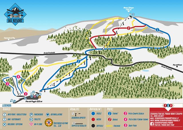 Here's a summary of the Pian del Poggio - Monte Chiappo ski resort in 50-100 words: Located in the province of Pavia, Italy, Pian del Poggio - Monte Chiappo is a ski resort with 2.5 km of slopes and 1 lift. The resort is situated between 1330-1700m altitude and offers 4.0 km of blue, 1.0 km of red, and 0 km of black slopes. The ski area is suitable for both beginners and experienced skiers, with a variety of trails for all levels. The resort is surrounded by three regions, making it a unique and scenic destination for winter sports enthusiasts.