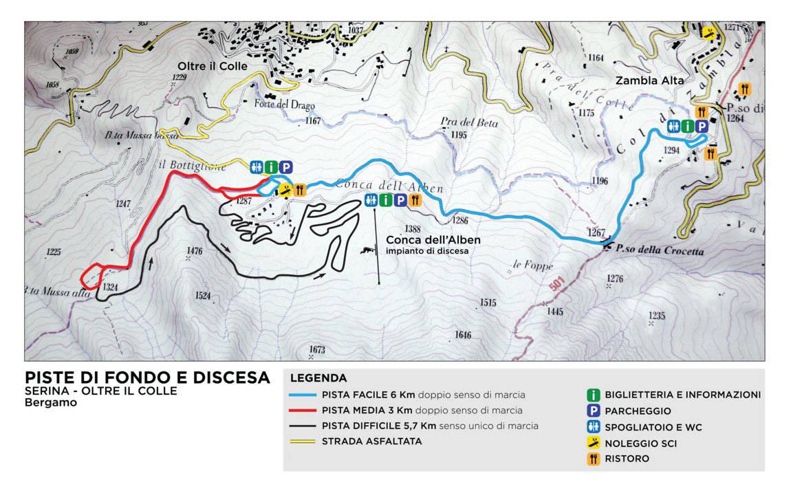 Conca dell'Alben is a ski resort located in Val Brembana, Lombardy, Italy. It has a 2.4-star rating and offers skiing and snowboarding opportunities. The resort is situated near Oltre il Colle and features a 423m lift and multi-use trails. The area is also popular for hiking, with trails like the Colle Zambla - Conca dell'Alben - Pian della Mussa loop, which is a 5.2-mile moderately challenging route.