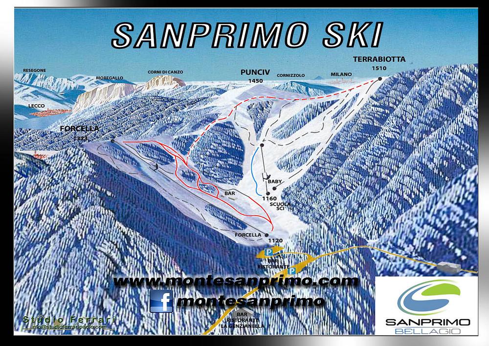 San Primo is a mountain in Lombardy, Italy, standing at 1,682 meters high. It offers stunning views of Lake Como and is a popular hiking destination. The mountain has a ski resort, although it was previously abandoned and is currently being redeveloped with a €5-million plan to reintroduce snow. The resort has 4 runs, a vertical drop of 0 meters, and 5 km of skiable terrain. It is accessible by bus, train, or ferry, and there are nearby hiking trails and holiday rentals available.