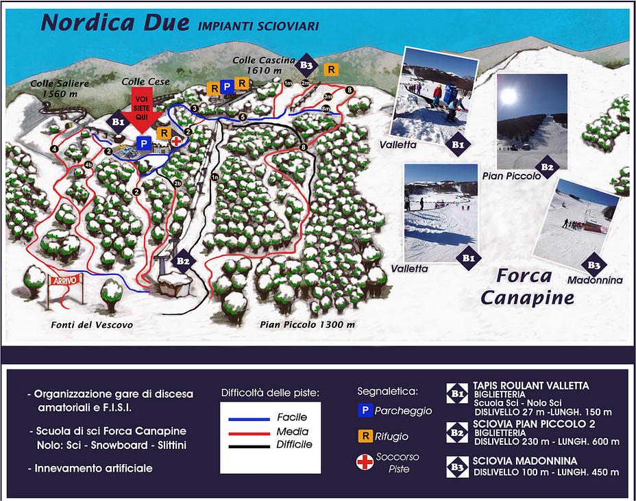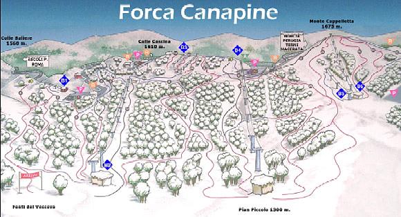 Forca Canapine is a ski resort located in the Apennine mountains of Italy, specifically in the Province of Ascoli Piceno, Marche region. It offers 8.5 km of slopes and 16 marked pistes, served by 6 ski lifts. The resort is situated at an altitude of 1,514 meters and is a popular destination for intermediate skiers. The area is also known for its stunning natural beauty and is a great spot for hiking and trekking.