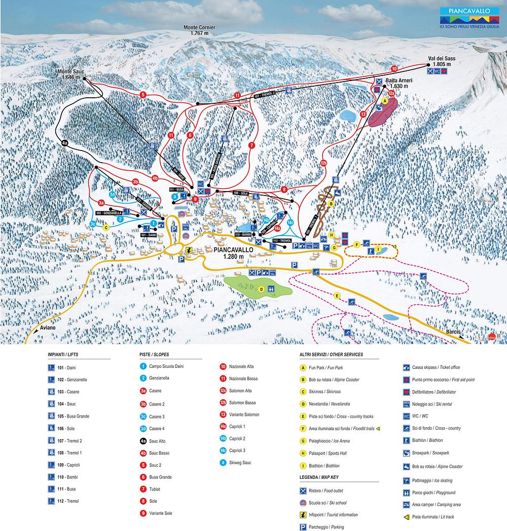 Piancavallo is a ski resort in the Dolomites of northern Italy, offering 17 km of slopes with artificial snow systems for constant snow cover. The resort has a vertical drop of 500 meters and is suitable for both alpine and cross-country skiing. It features a range of trails for all levels, including beginner-friendly runs and challenging slopes for experienced skiers. The resort also offers a toboggan and snow tubing area, as well as a variety of amenities, including restaurants and accommodations.
