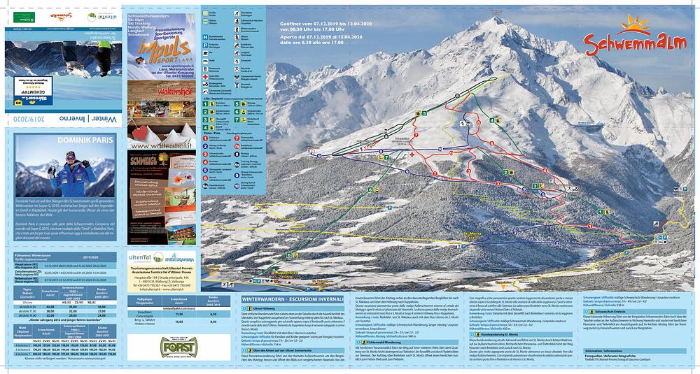 Schwemmalm is a ski resort located in the Ulten Valley in South Tyrol, Italy. It offers 25 km of ski slopes with varying difficulty levels, including 7.1 km of easy, 14.3 km of medium, and 3.7 km of challenging runs. The resort has a total of 7 lifts, including a gondola and 4 chairlifts, and a vertical drop of 1475 meters. Schwemmalm is suitable for both families and experienced skiers, with a range of modern facilities and amenities.