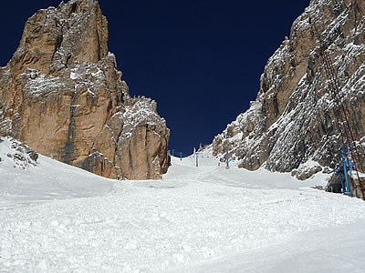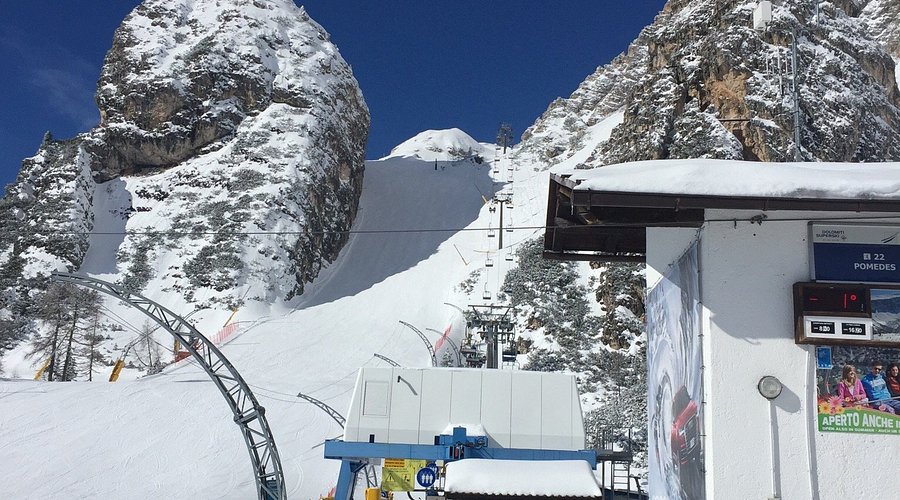 Cristallo - Faloria is a ski resort located in Cortina d'Ampezzo, Italy, offering 24 ski trails across 44 kilometers of slopes. The resort is divided into two areas: Faloria, which is shaded and has better snow quality, and Cristallo, which is sunny with panoramic views. The resort has a cable car that takes skiers from the town center to the 2,134-meter-high Mount Faloria. Cristallo - Faloria is suitable for all skill levels, with slopes ranging from black to blue and red. The resort is part of the larger Cortina d'Ampezzo ski area, which boasts 120 kilometers of slopes.