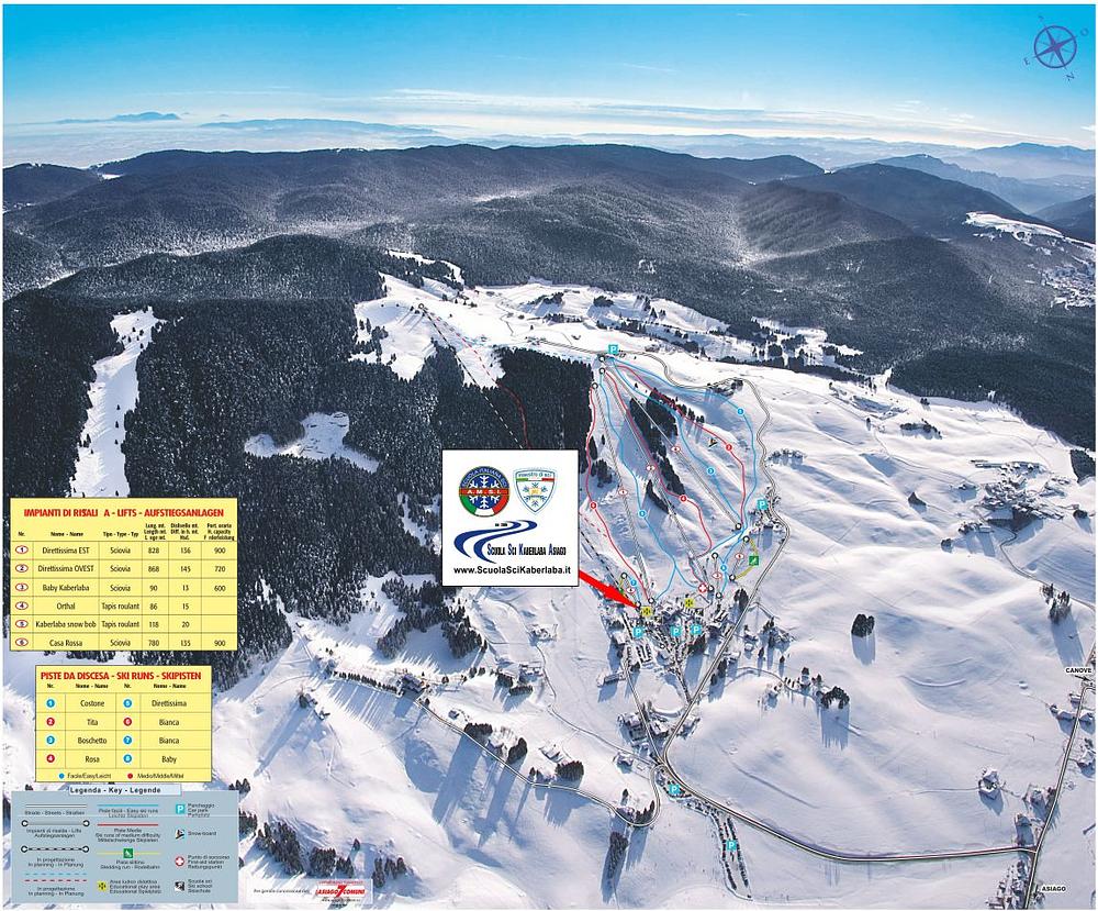 Kaberlaba is a ski resort located on the Asiago Plateau in Veneto, Italy. It offers 5.6 km of slopes, 4 chairlifts, and 2 magic carpets, catering to a range of skiers and snowboarders. The resort is situated near the town of Asiago and is accessible by car. Kaberlaba is ideal for families, athletes, and groups, with a ski school and various amenities available.