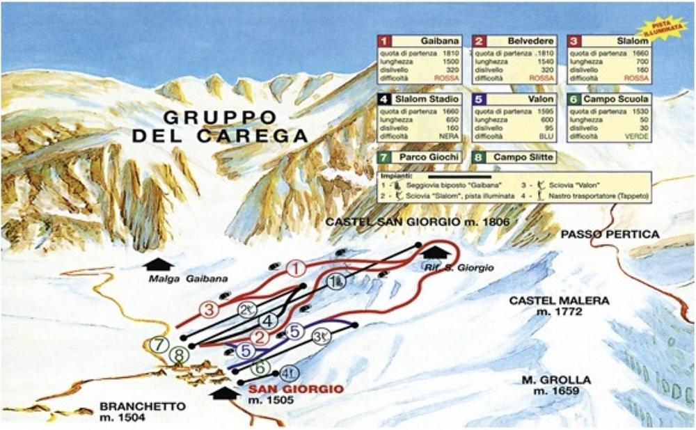 Malga San Giorgio is a small ski resort in the Veneto region of Italy, located in the Province of Verona. It offers skiing up to 1806m altitude, making it suitable for beginners, intermediates, and snow enthusiasts. The resort has 4 ski lifts, including a chair lift and 3 surface lifts, and boasts stunning views of the surrounding mountains. It's a great option for those looking for a peaceful and picturesque skiing experience.