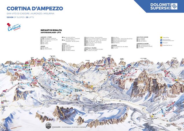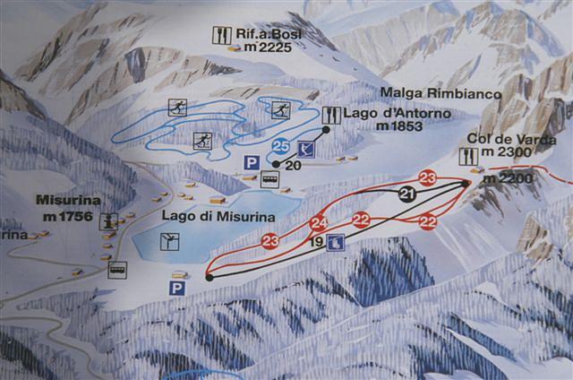 Misurina is a small ski resort in the Italian Dolomites, located in the Auronzo di Cadore area of Veneto, Italy. It offers skiing on 2km of pistes up to 2200m altitude, with 3 ski lifts, including a rapid automatic coupled quad chair lift. The resort boasts natural snow cover for the whole ski season, making it a winter sports paradise.