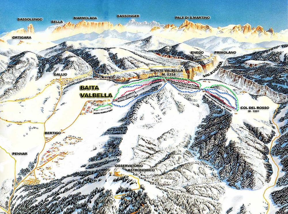 Monte Valbella (Asiago) is a mountain destination in the Plateau of Asiago, Italy, offering a range of outdoor activities such as hiking, birding, and skiing. The area is accessible from the village of Gallio, with several ski resorts nearby. The Albergo Valbella hotel is a convenient option for accommodation, offering amenities like a shared lounge, free parking, and a restaurant. The surrounding landscape is characterized by forests, meadows, and mountains, making it an ideal spot for nature lovers and outdoor enthusiasts.