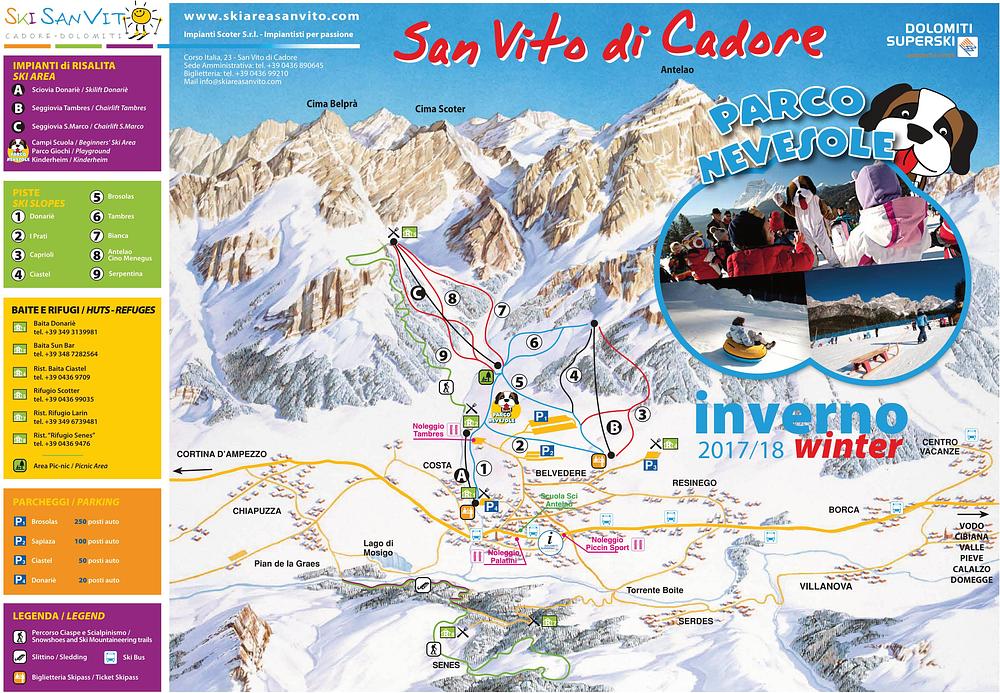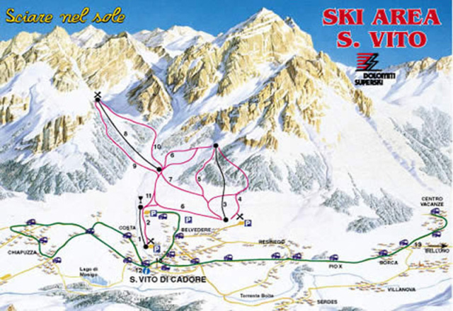 San Vito di Cadore is a charming village in the Dolomites, Italy, offering a range of winter sports and activities. The ski resort boasts 9 skiable trails, 4 lifts, and a vertical drop of 540m. It's part of the Dolomiti Superski area, providing access to 882 miles of downhill skiing and 668 marked pistes. The village offers a family-friendly atmosphere, with ski schools, refuges, and a playground for children. It's an ideal destination for both winter and summer holidays, with breathtaking mountain views and spas nearby.