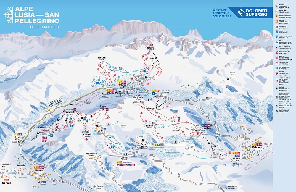 Ski Area San Pellegrino - Falcade is a ski resort located in the Dolomiti Superski area of Italy, offering a vast ski terrain with 74 km of slopes and 31 runs. The resort caters to various skill levels, from beginners to professionals, with modern lifts and well-groomed slopes. It's an ideal destination for families, with long sunny slopes and good restaurant options. The area is part of the larger Val di Fassa region, which offers a diverse skiing experience.