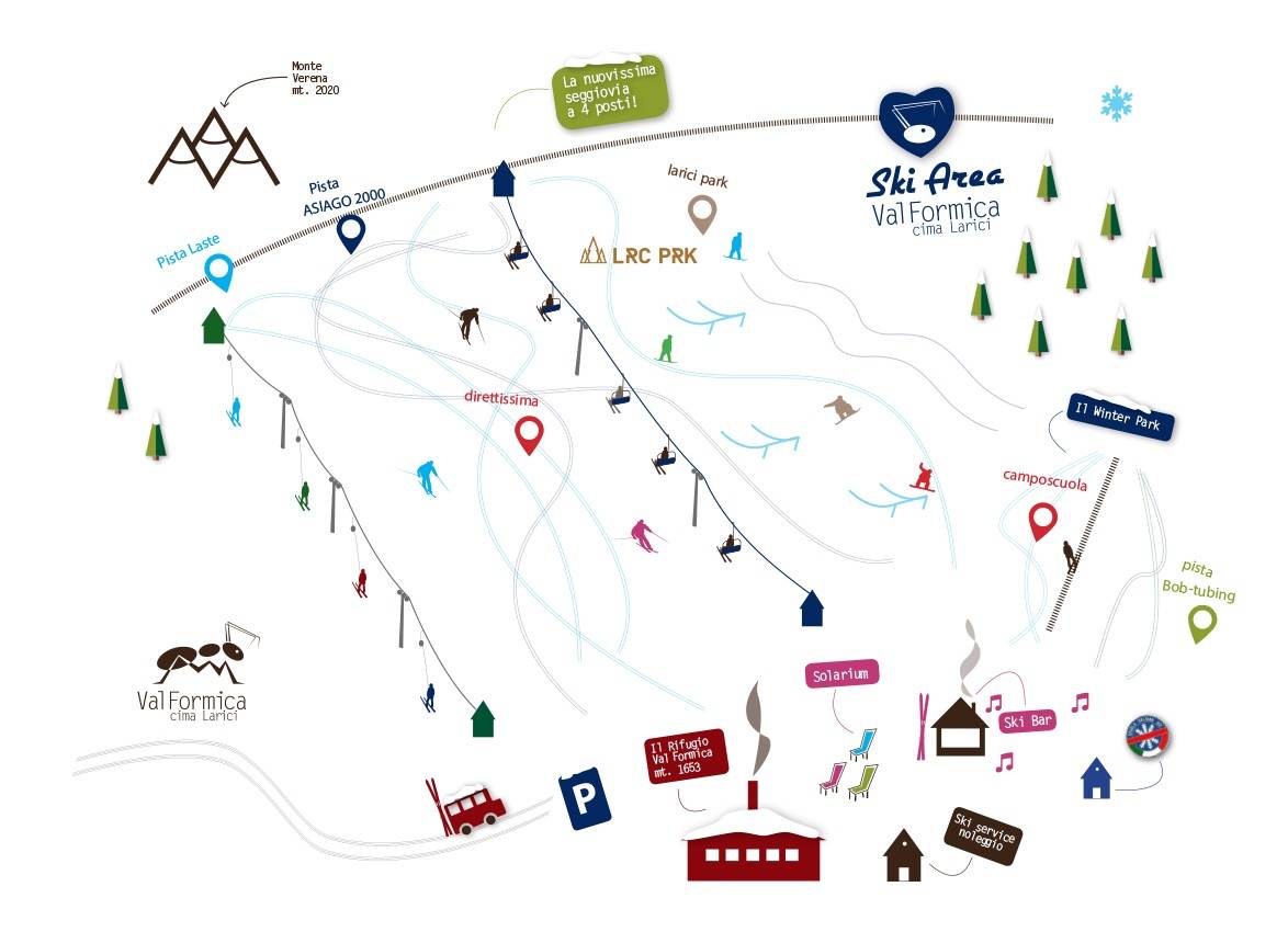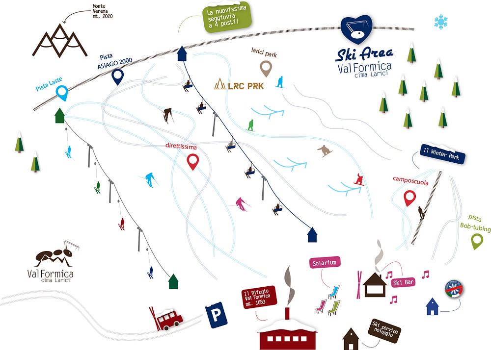 Val Formica is a ski resort located on the Asiago plateau in Italy, at an elevation of 1,653 meters. It offers a range of slopes, including four blue slopes and one snow park, making it suitable for both beginners and experienced skiers. The resort features new and fast lifts, as well as a restaurant and bar. Val Formica is part of the larger Larici ski area and is known for its sunny and easy slopes, making it an ideal destination for families.