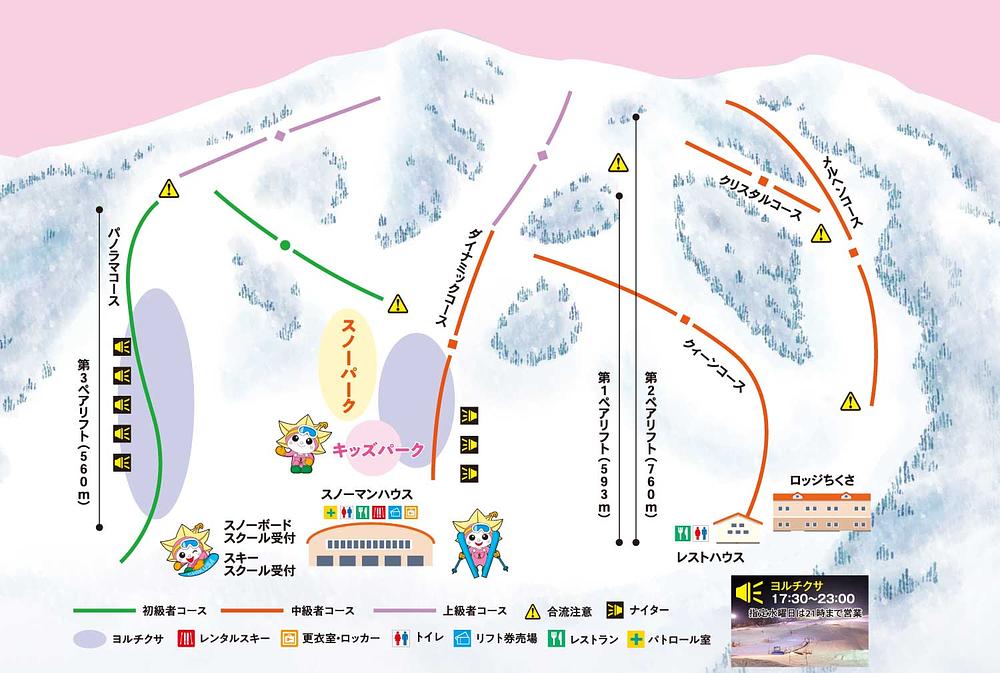 Chikusa Kogen is a family-friendly ski resort located in Shiso, Hyogo Prefecture, Japan. It boasts excellent snow quality and accessibility, making it a popular destination for families. The resort offers a variety of courses suitable for all skill levels, ensuring that everyone can enjoy the slopes together. With a compact layout, the resort's course designs prevent fatigue, allowing visitors to ski or snowboard without getting tired. Chikusa Kogen is easily accessible, taking only about 2 hours from Osaka.