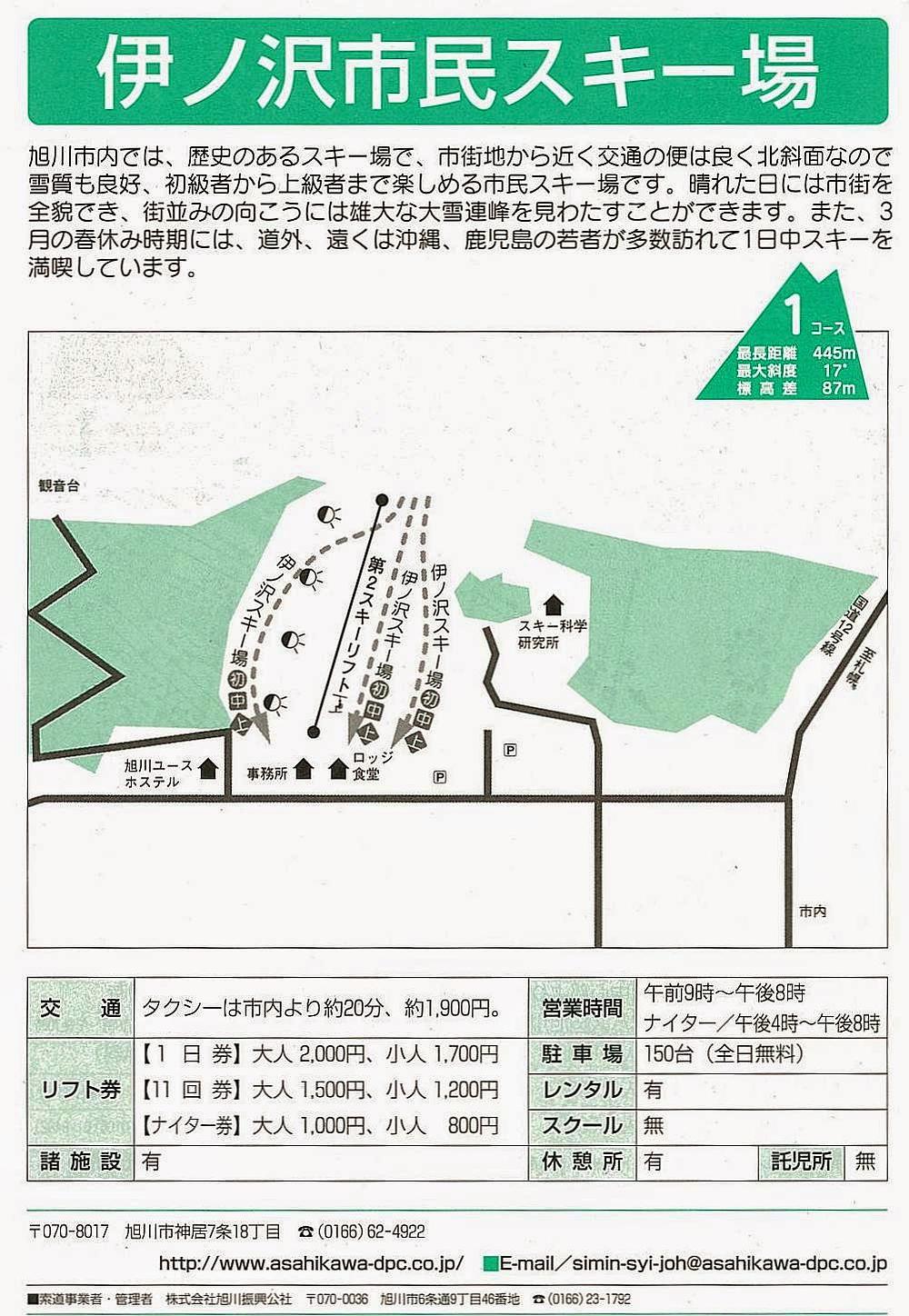 Inosawa City (伊ノ沢市民スキー場) is a ski resort located in Asahikawa, Hokkaido, Japan. It offers a gentle slope with a single lift, making it suitable for beginners and those returning to skiing after a long break. The resort has two courses, including an exam course and a beginner course, with an average snowfall of 90 cm. It's a historic ski area that has been serving the local community for nearly a century, but with many modern facilities nearby, it may not be the most popular choice for tourists.