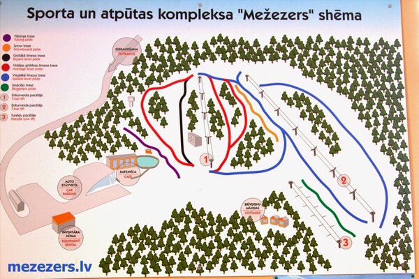 Mezezers is a ski resort located in the Aiviekste Parish of Latvia, near the town of Pļaviņas. It offers a range of activities year-round, including downhill skiing, snowboarding, and hiking. The resort features a ski hill with 7 slopes and lifts, as well as an outdoor pool fed by 12 mountain springs from an underground lake. In the summer, visitors can enjoy a public beach, campsites, and water sports rentals. Mezezers also has a restaurant, cafe, and bar, as well as a hotel and vacation rentals. The resort is a popular destination for outdoor enthusiasts and families.