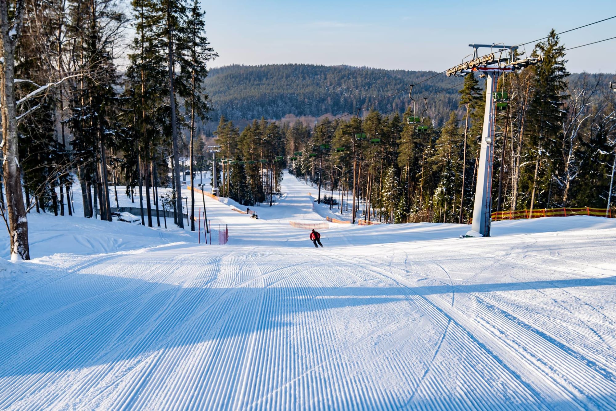 Ozolkalns is a ski resort located in Latvia, offering 2.5 km of slopes for skiing and snowboarding. The resort has 4 lifts and 5 slopes, with the longest reaching 500m in length and 80m in altitude. The slopes are lit for skiing and snowboarding at night. The resort is situated in the Cēsis Municipality, near the city of Cēsis, and is a popular destination for winter sports enthusiasts.