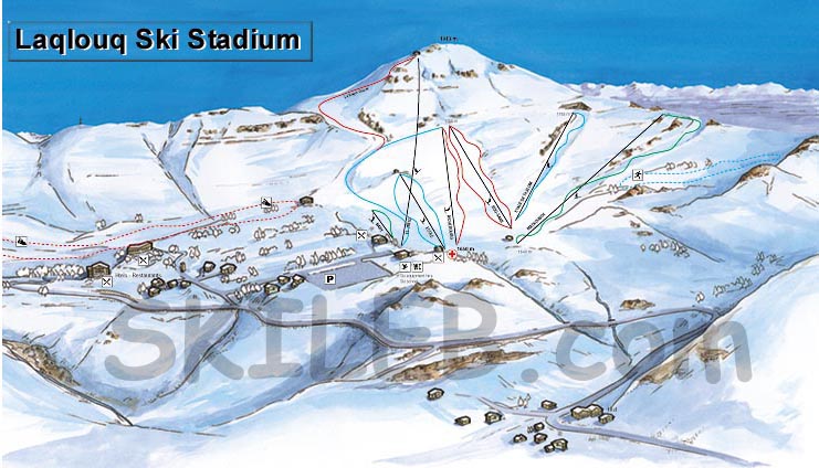 Laklouk, a ski resort in Lebanon, offers a winter and summer experience on a plateau at 1750-2000m altitude, surrounded by rugged terrain. The resort has 3.9 km of slopes and 6 lifts, with slopes operating from 8am-3:30pm weekdays and 4pm weekends and holidays. Accommodations and activities like paintball and igloo contests are available, with prices and reviews varying.