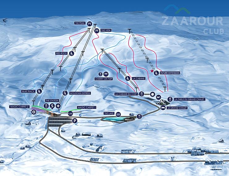 Zaarour Club is a ski resort located on the eastern slopes of Mount Sannine in the Matn District of Mount Lebanon Governorate, 35 km from Beirut. It offers a range of winter activities, including skiing, and has a base elevation of 1,645 meters. The resort features 16 km of slopes, 6 lifts, and a panoramic view of the Valley of the Skulls and Mount Sannine. Zaarour Club is a popular destination for winter sports enthusiasts, with a 4.3-star rating based on 937 Google reviews.