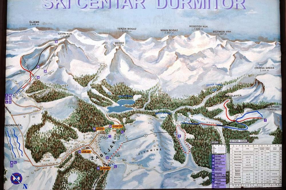 Ski centar Durmitor "Savin kuk" is a ski resort located in Zabljak, Montenegro, offering nearly 5 kilometers of slopes for skiers and snowboarders. The resort features a chairlift, with a short walk to access the top, and offers stunning views of the Black Lake from the summit. The ski center is easily accessible from the town of Zabljak, with some options for hiking to the top. The resort is a popular destination for winter sports enthusiasts, with a variety of slopes for different skill levels.