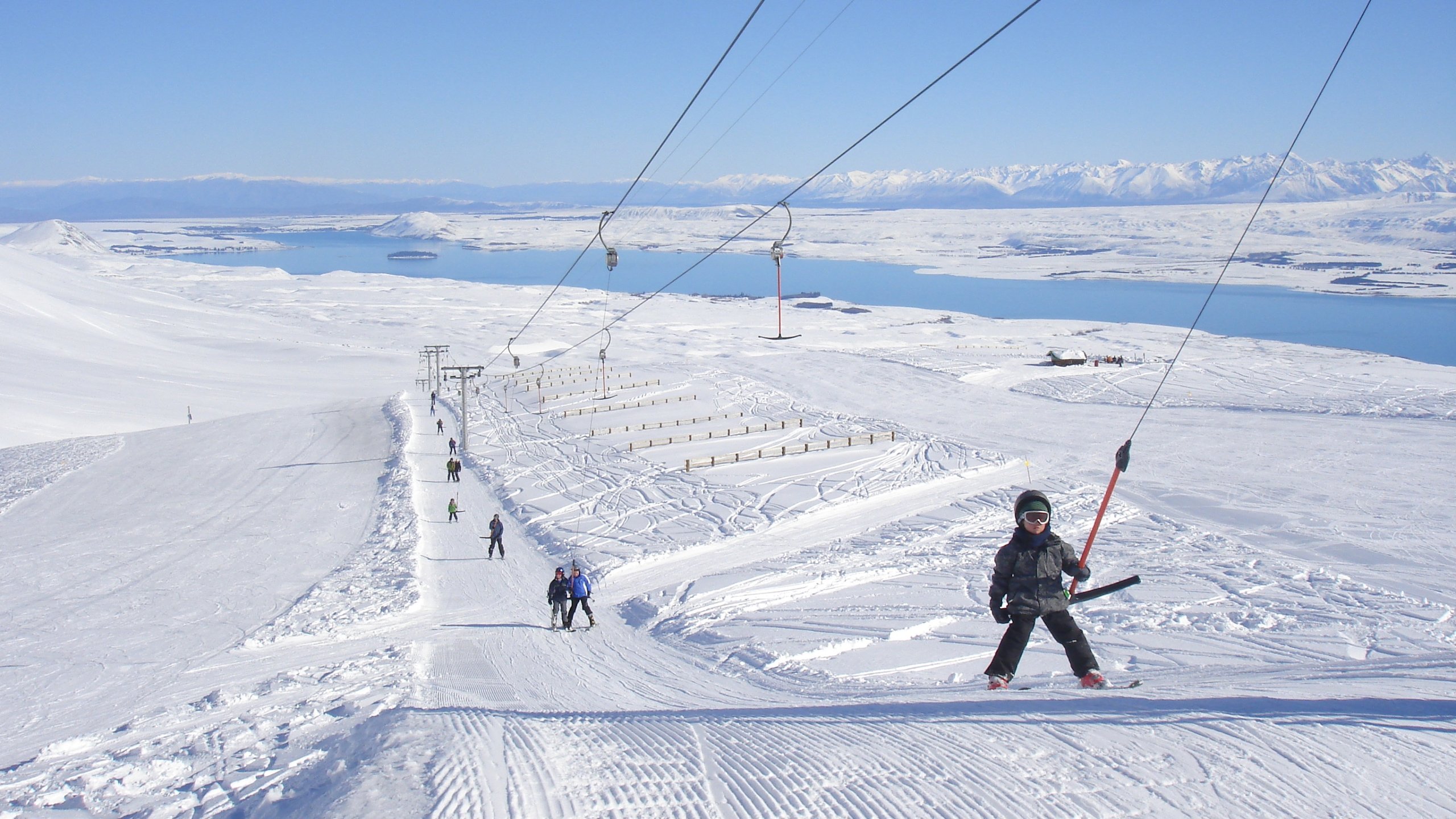 Mount Dobson Ski Field in Canterbury, New Zealand, is a popular ski destination on the South Island's Mackenzie region. It offers a learner and intermediate area, a natural halfpipe, and miles of untracked snow, making it suitable for families, beginners, and intermediate skiers. The ski field has 10 km of slopes and 4 lifts, providing a fun skiing and snowboarding experience. With regular snowfalls and all-day sunshine, Mount Dobson is a great spot for those seeking uncrowded runs and a friendly atmosphere.