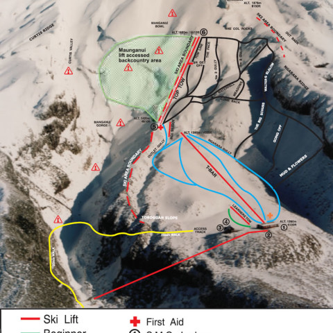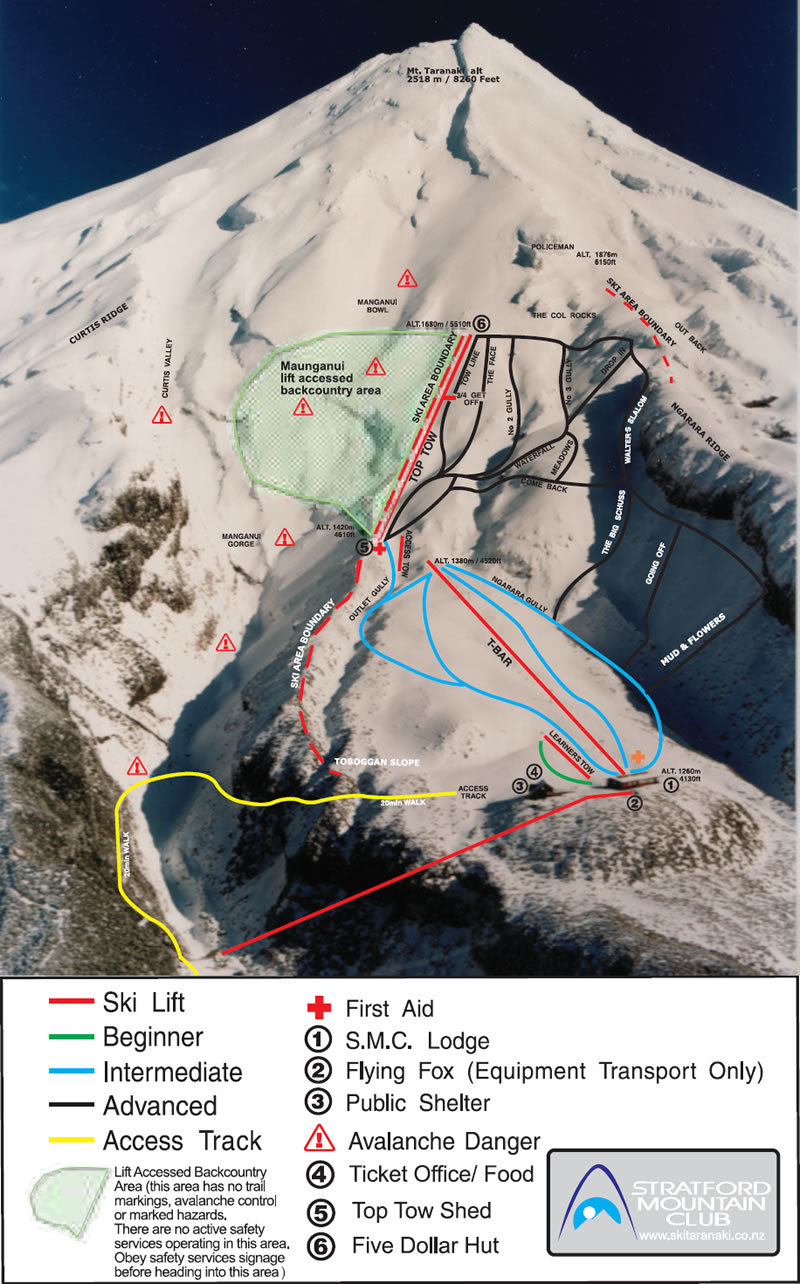 Manganui is a club ski field located on the slopes of Mt. Taranaki in New Zealand's North Island. It offers a compact ski area with gentle intermediate runs and open bowls, as well as steeper off-piste trails for more experienced skiers. The ski field is maintained by the Stratford Mountain Club and has a lodge with accommodation on site. Manganui is considered family-friendly and has a laid-back atmosphere, making it a great option for those looking for a more rustic skiing experience.