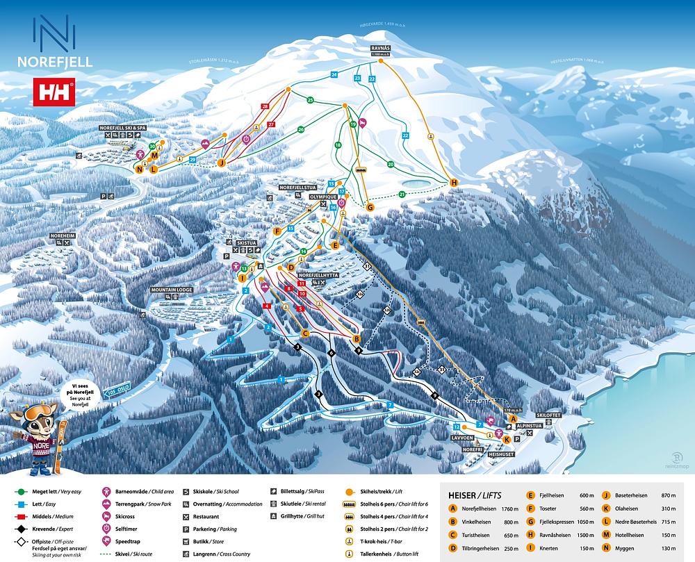 Norefjell is a ski resort located in Norway, approximately two hours north of Oslo. It offers a variety of slopes for all ages and skill levels, with 25 km of skiing and snowboarding terrain. The resort is surrounded by beautiful nature and mountains, providing a serene escape for nature lovers and adventure enthusiasts. Norefjell has a ski-in/ski-out hotel, Norefjell Ski & Spa, which offers mountain-view spa facilities and free WiFi. The resort has received an average rating of 4.5 out of 5 stars based on 947 Google reviews.