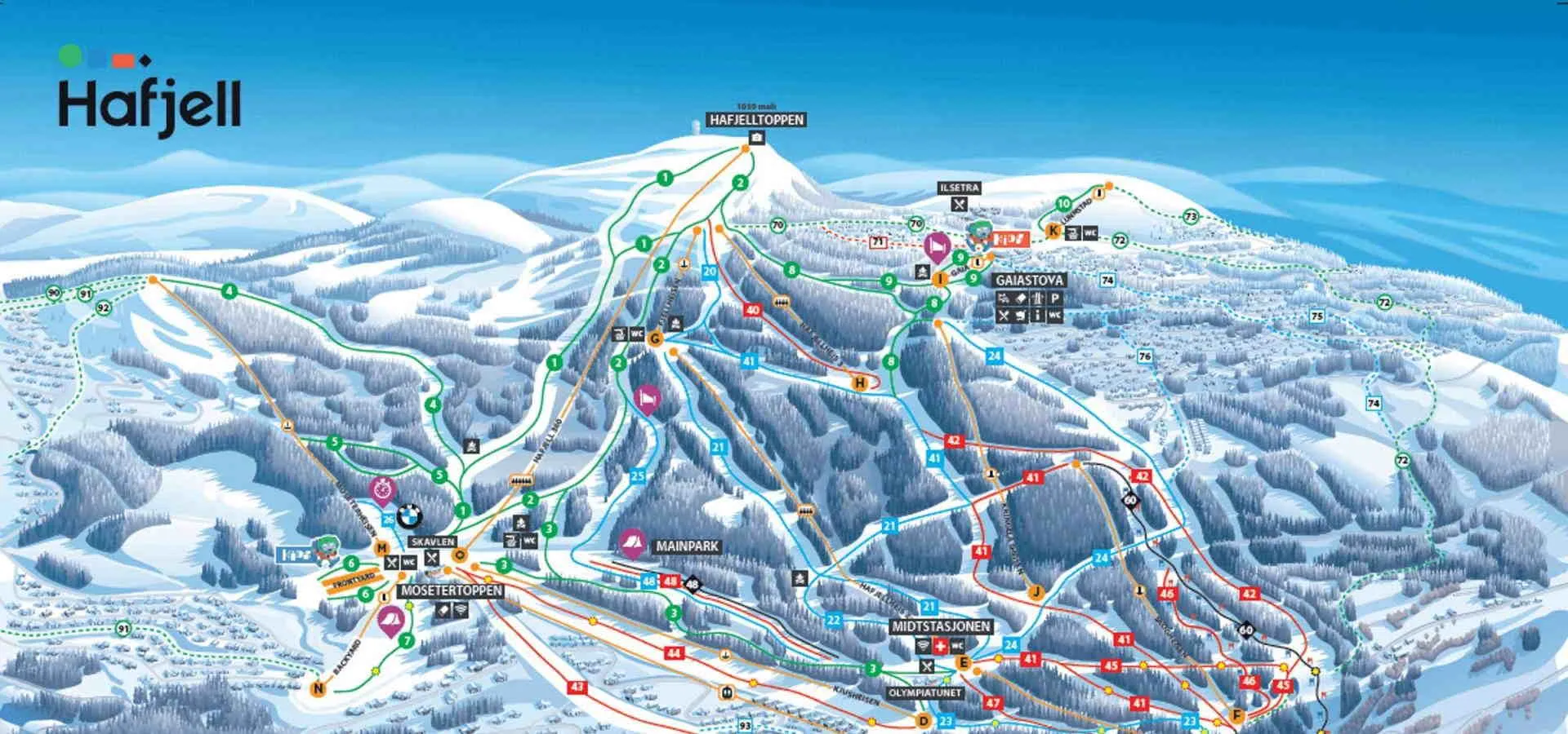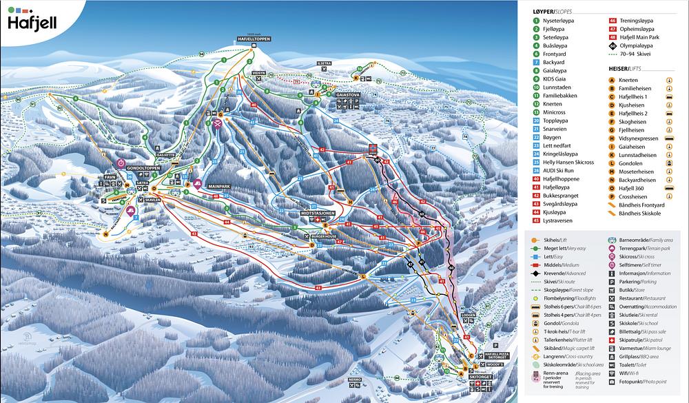 Hafjell is a large and versatile ski resort in Norway, located just 15 minutes north of Lillehammer. It offers a wide range of skiing options for all levels, from beginner to expert, with 16 ski lifts and 40.5 km of slopes. The resort also features a gondola, varied trails, and a children's area with activities. Hafjell was the venue for the 1994 Lillehammer Winter Olympics and is suitable for families, with miles of cross-country ski trails, walks, and cycle paths.