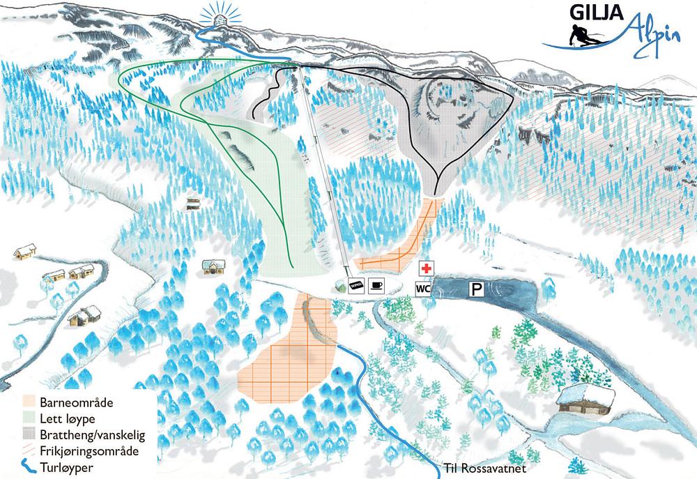 Gilja Alpin is a ski resort located in Gilja, Norway, offering a ski race of 2296.6 feet and a main run of 4265.1 feet. The resort has a vertical drop of 656.2 feet and is situated 5 kilometers from the village center. The ski resort features a trail map with various slopes and lifts, and offers ski-in/ski-out vacation rentals in the area. The resort is part of the Giljastølen mountain, which offers varied mountain hikes, fishing, and swimming opportunities.