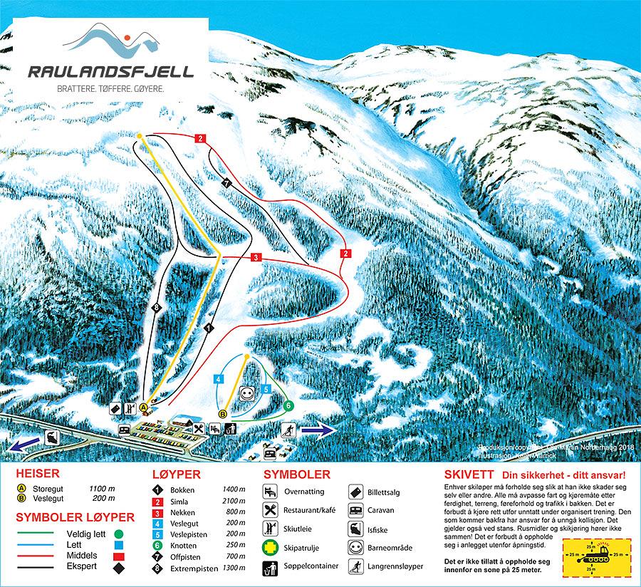 Raulandsfjell Alpinsenter is a ski resort in Vinje, Telemark, Norway, offering 12 ski lifts and six slopes with varying lengths and difficulties. The resort has a height difference of 365 meters and is suitable for all skill levels. It features a sauna, fitness center, and ski-in/ski-out access, making it a great destination for winter sports enthusiasts.