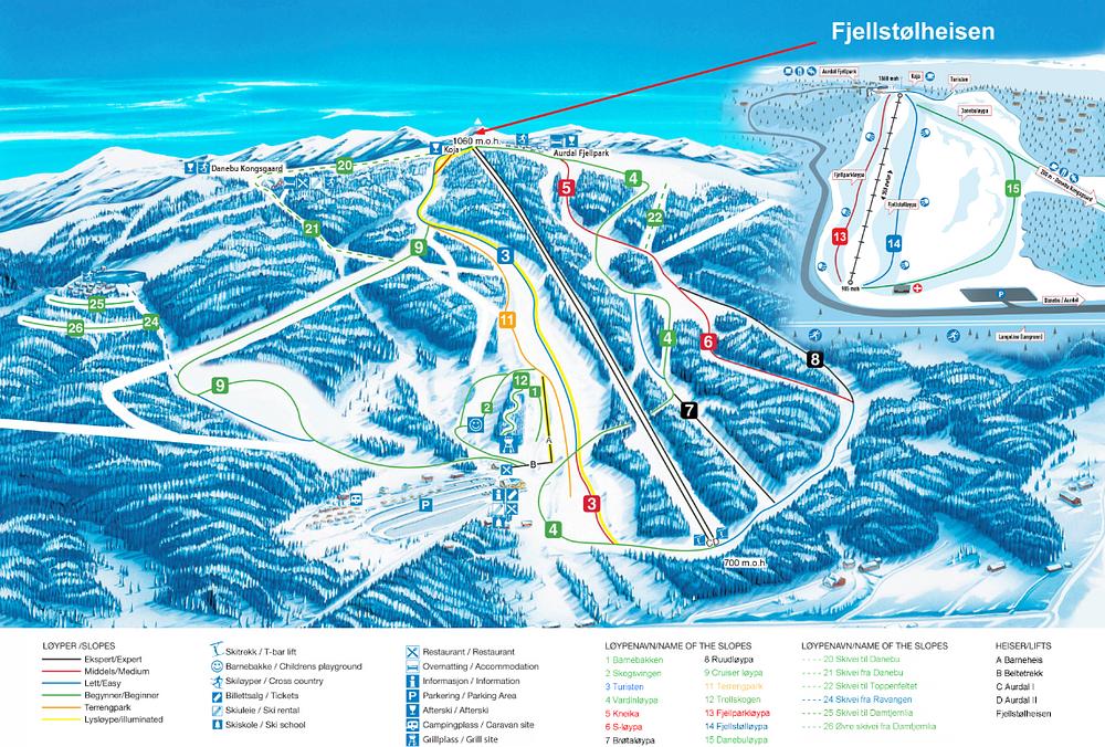 Valdres Alpinsenter is a ski resort located in Aurdal, Norway, easily accessible from the E16 highway. It features 5 lifts, 14 slopes/trails with varying difficulties, and a terrain that stretches from 700 to 1060 meters in altitude. The resort offers a range of skiing options for all levels, including a children's slope and a variety of runs for beginners, intermediates, and advanced skiers. The resort is open from late November to mid-April, with operating hours from 9:30 AM to 4:00 PM.