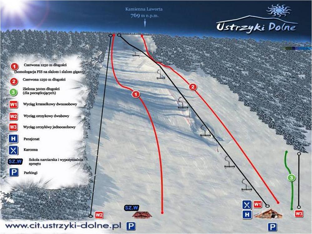 Laworta is a ski resort located in Brzegi Dolne, Poland, near the town of Ustrzyki Dolne in the Carpathian Mountains. It features 2.8 km of slopes, 3 lifts, and a chair lift and drag lift. The resort is known for its well-maintained slopes, which are artificially snow-covered and lit for night skiing. Laworta Ski has a 4.6-star rating on Google based on 214 reviews, with many praising its varied difficulty levels and scenic views.