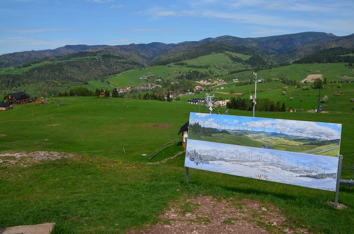 Arena Narciarska Jaworki Homole is a ski resort located in Jaworki, Poland, offering 3 km of slopes for skiing and snowboarding. The resort has a chairlift and is suitable for beginner skiers and advanced seniors, with favorable weather conditions. The resort is open year-round, with some restrictions in summer. It features a ski school, rentals, and a webcam. The area also offers other activities such as hiking and mountain views.