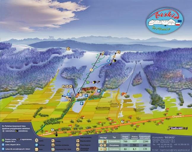 Here is a 50-100 word summary of Beskid: Beskid is a ski resort located in Spytkowice, Poland, in the Lesser Poland Voivodeship. It offers 2.4 km of slopes for skiing and snowboarding. The resort features ski-in/ski-out access, an indoor pool, sauna, and hot tub, as well as ski rentals and lessons. Accommodations are available at the Kompleks Beskid Spytkowice hotel, which offers free breakfast, WiFi, and parking. The resort is surrounded by picturesque mountain scenery and offers a range of amenities for a relaxing and adventurous ski vacation. It has received high ratings from guests, with an average of 9/10 on various booking websites.